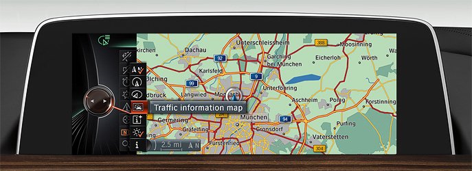 Интеллектуальная функция информирования об объездных маршрутах позволяет водителю найти оптимальный путь в пункт назначения. Система получает данные из таких источников, как анонимные профили перемещения (из GPS-данных парков транспортных средств), приложения для смартфонов и полицейские отчеты, а также учитывает часы пик и другие известные закономерности.